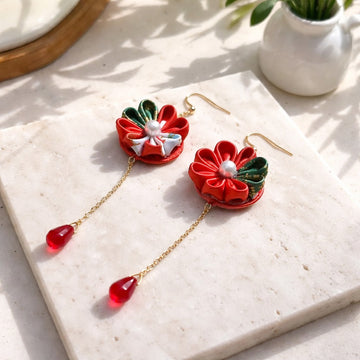 it's lightweight, so it doesn't put any strain on your ears. The design unique to Tsumami-zaiku work is delicate, beautiful, and attractive. The unique design goes well with both clothes and Kimono, and will make you feel better.