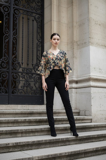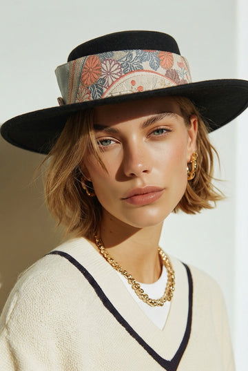 Kimono wide Wave Choker (Floral Orange × Black)