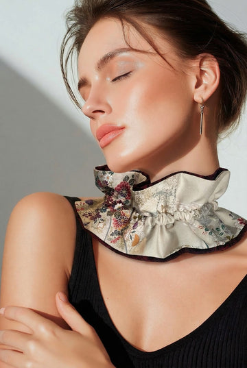 Kimono wide Wave Choker (Floral Pattern White × Red Black)