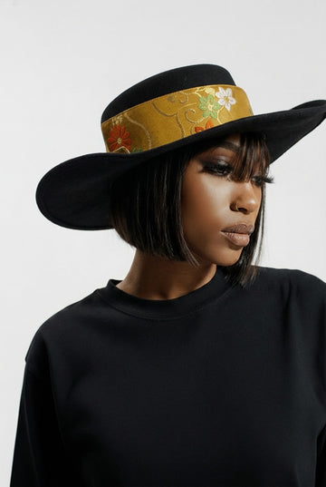 Ribbon Style Kimono Back Belt (Black × Floral Orange)