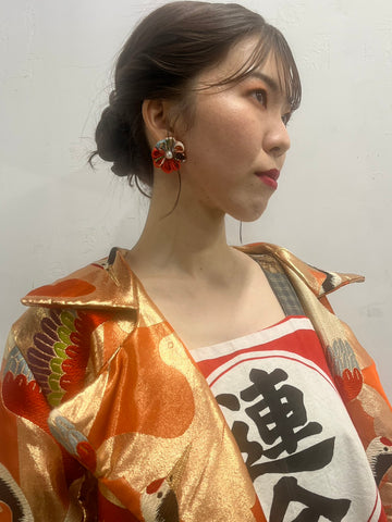 可憐(karen) Red kimono flower earrings