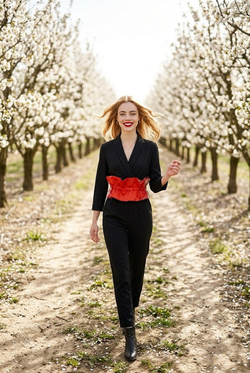 Ribbon Style Kimono Back Belt (Floral Pattern × Red)