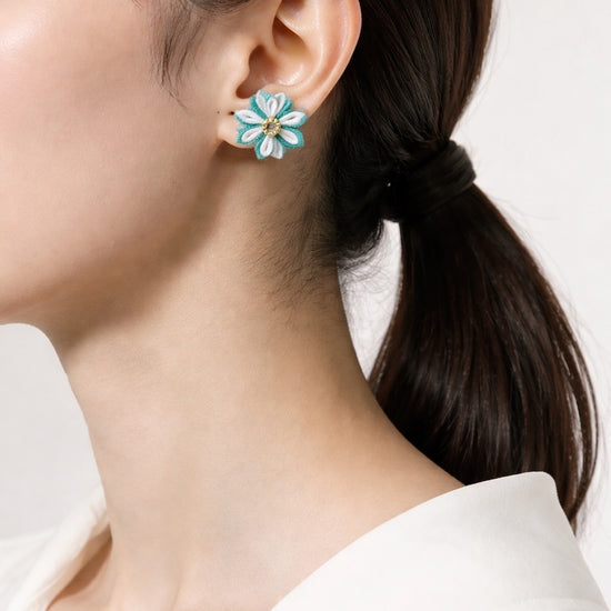 Blue×White Double Flower Earrings
