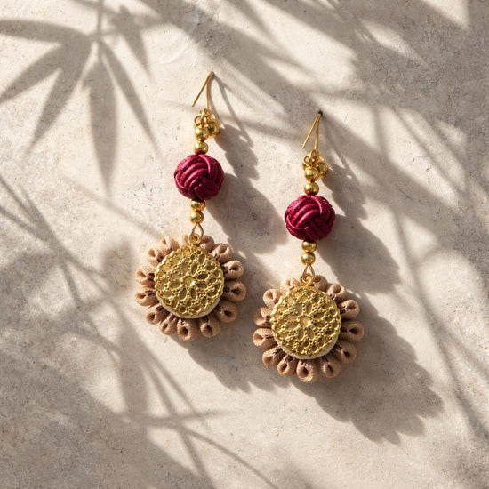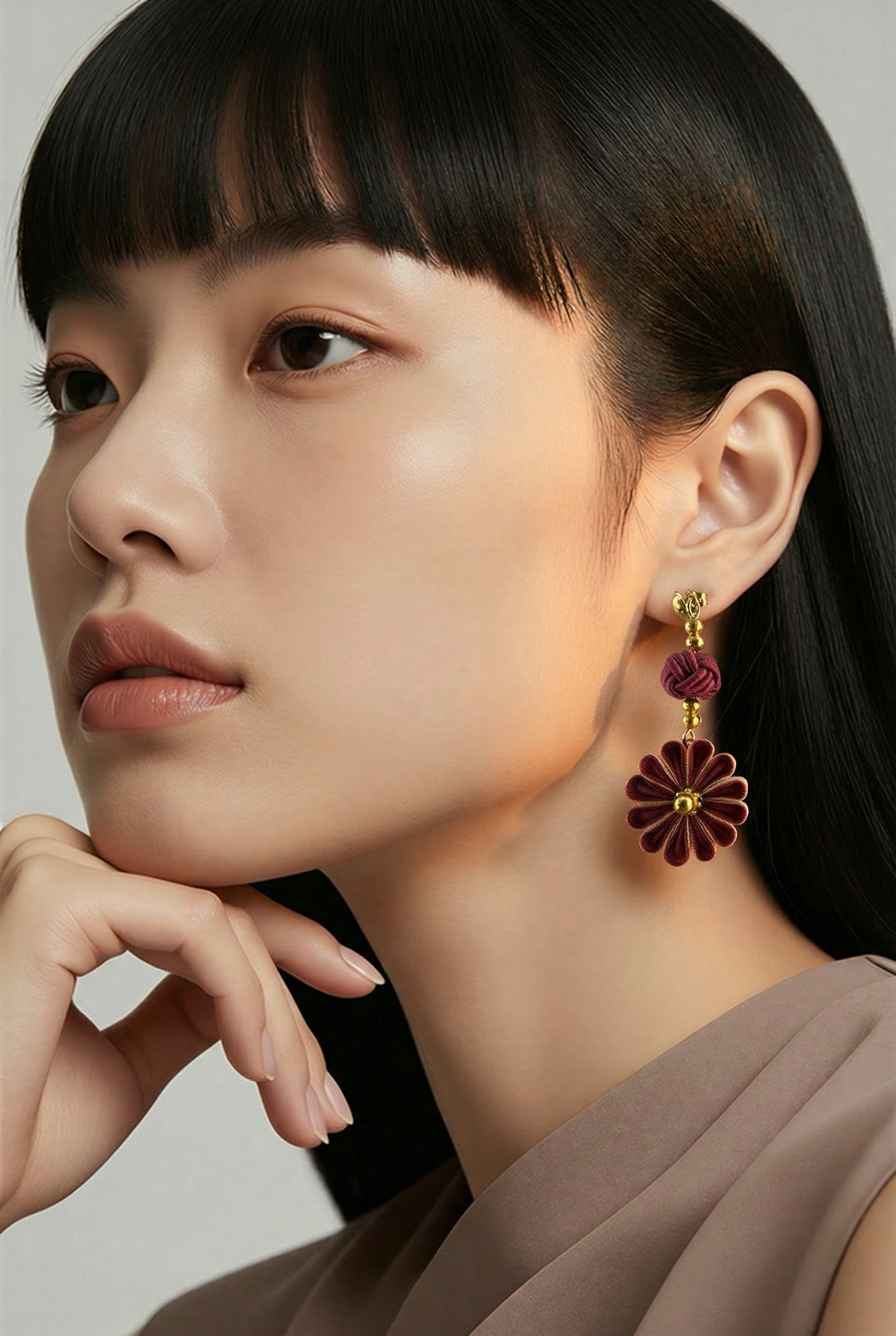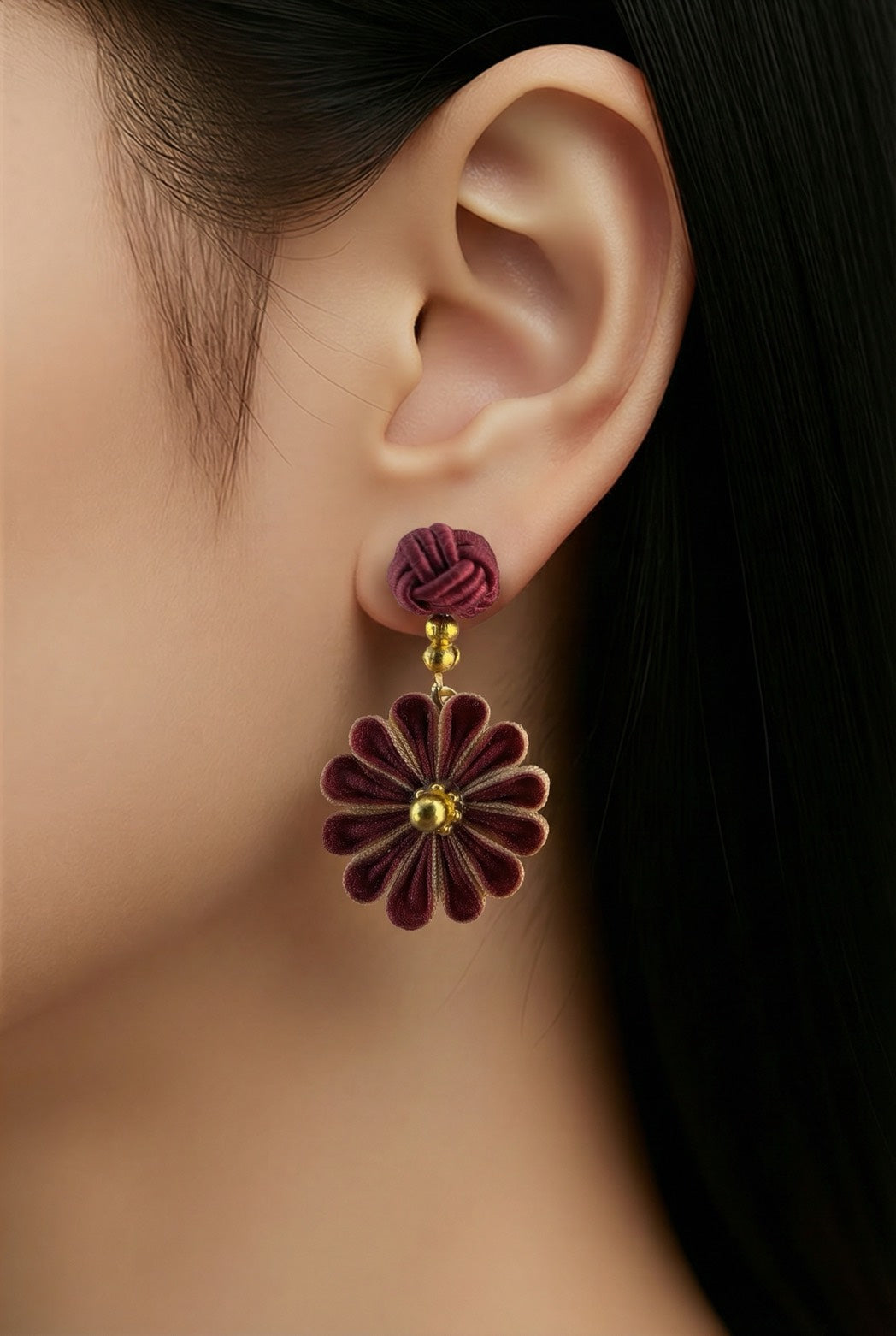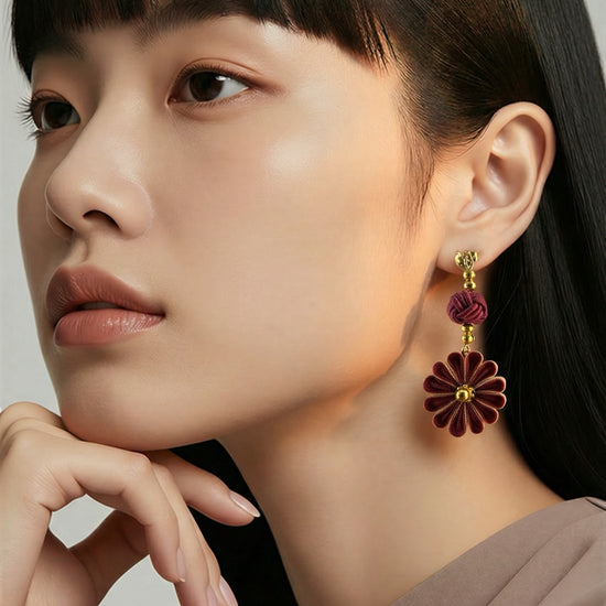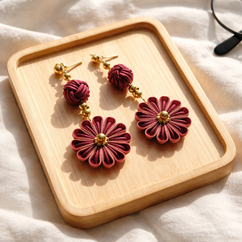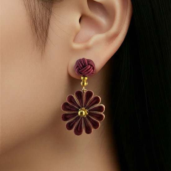 Dark red Japan flower earrings