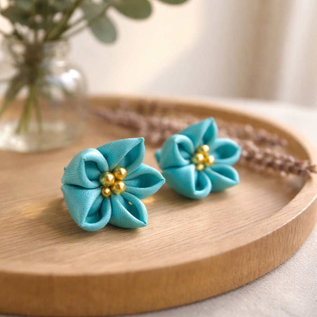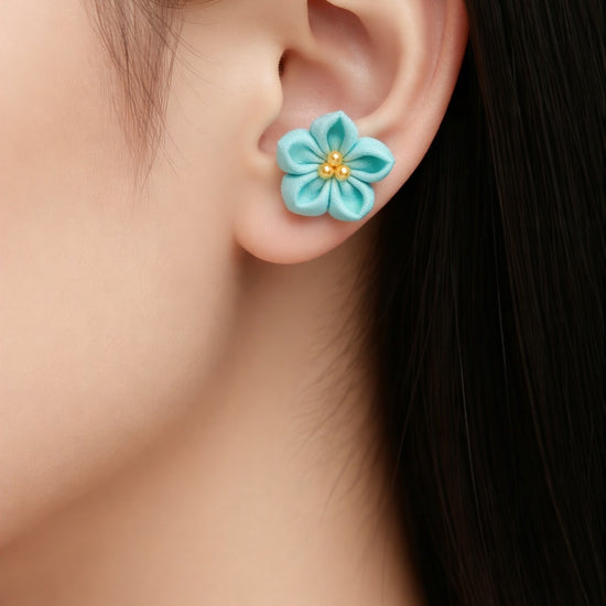 Floral earrings made of shiny fabric are designed to be worn on dates, anniversaries, and parties. Why don't you spend a day as charming as this bellflower flower?