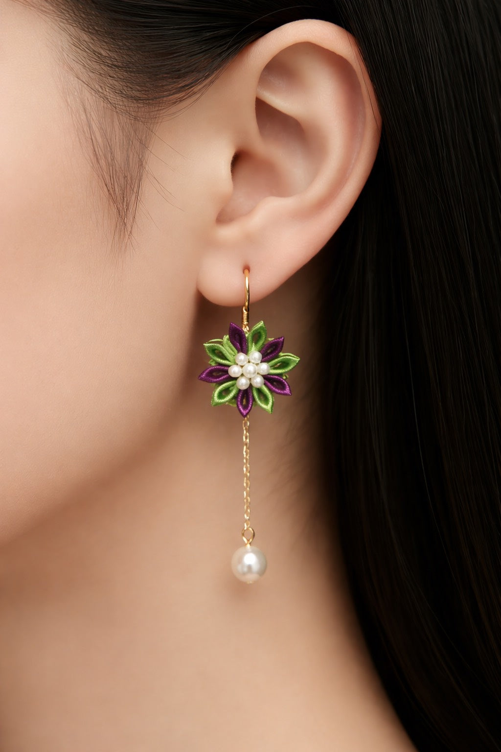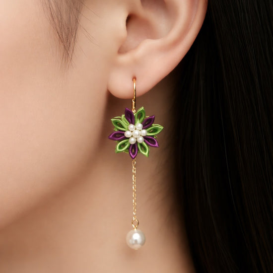 it's lightweight, so it doesn't put any strain on your ears. The design unique to Tsumami-zaiku work is delicate, beautiful, and attractive. The unique design goes well with both clothes and Kimono, and will make you feel better.