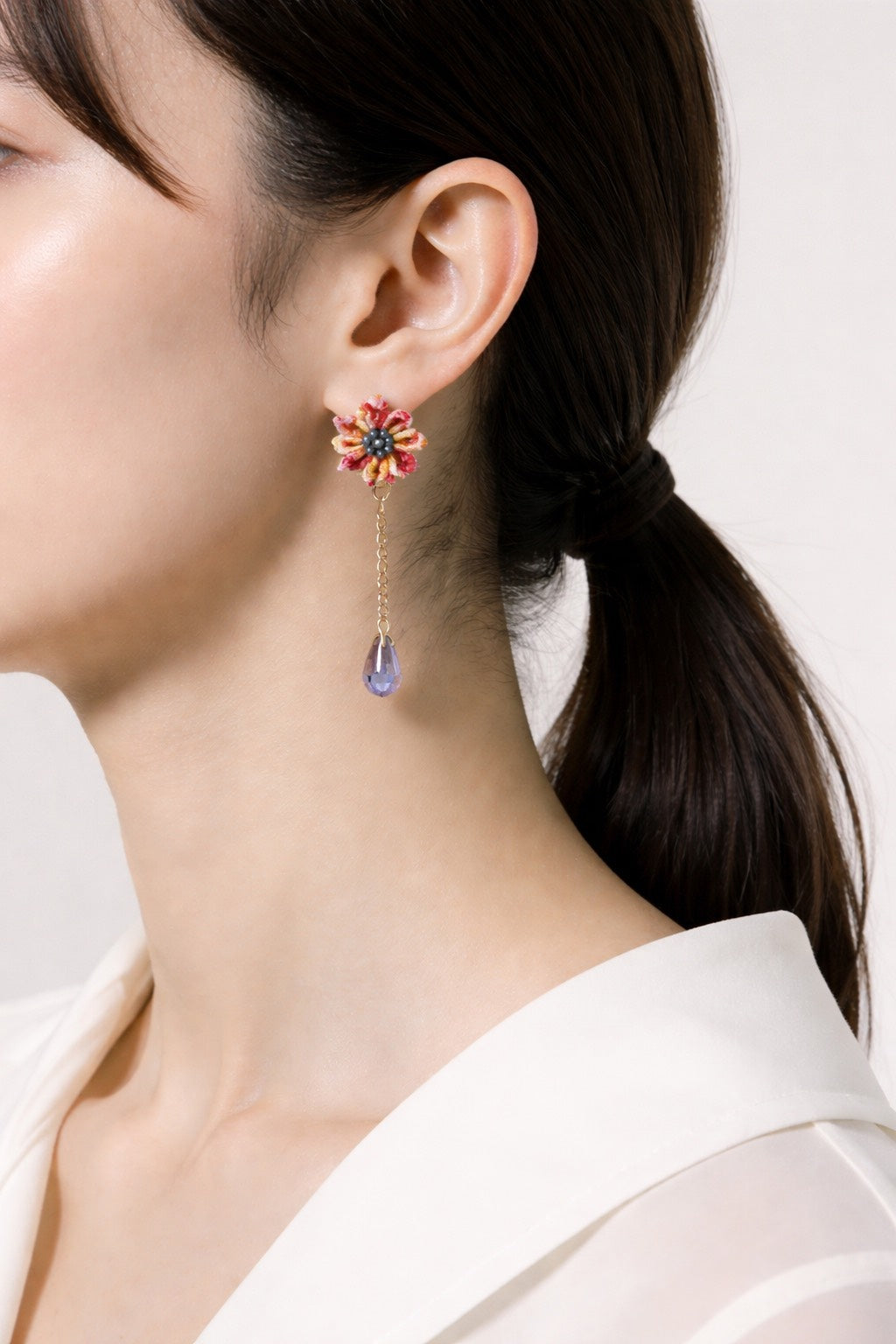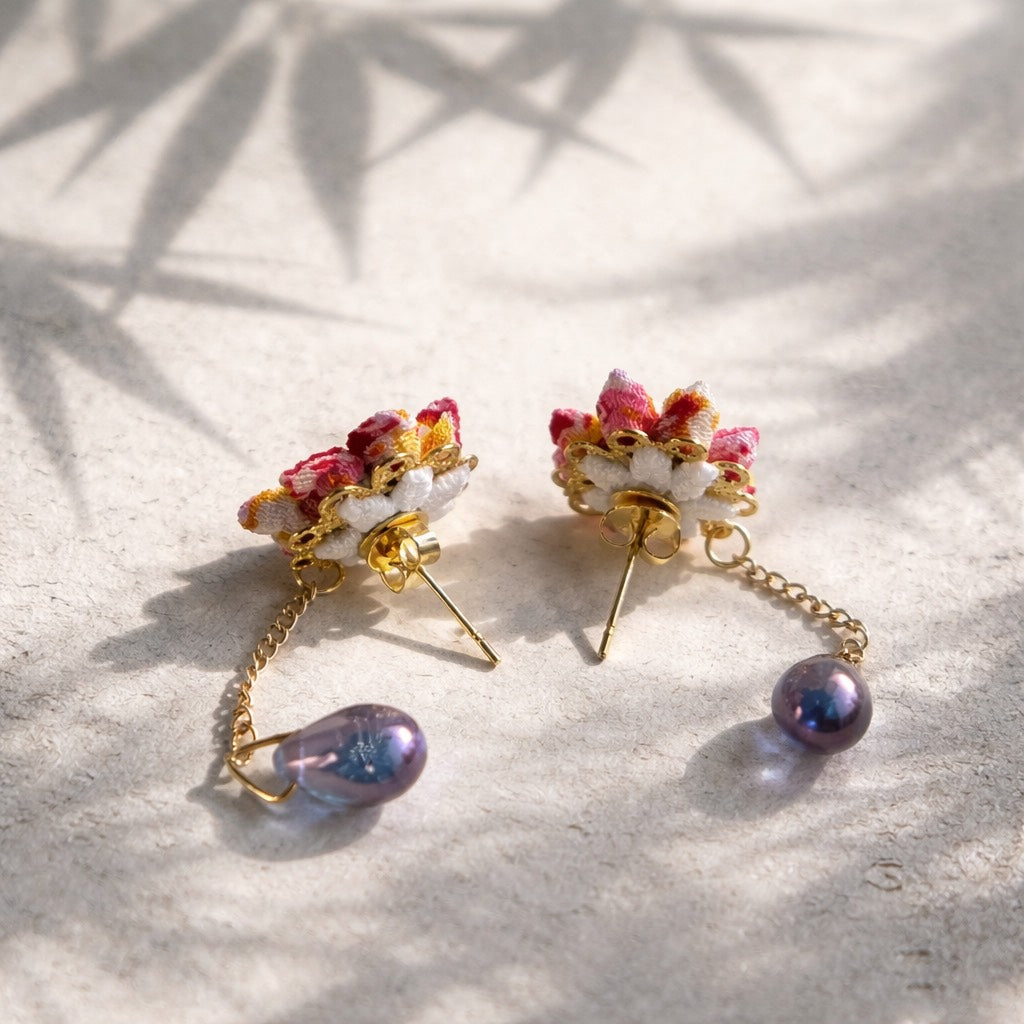 it's lightweight, so it doesn't put any strain on your ears. The design unique to Tsumami-zaiku work is delicate, beautiful, and attractive. The unique design goes well with both clothes and Kimono, and will make you feel better.