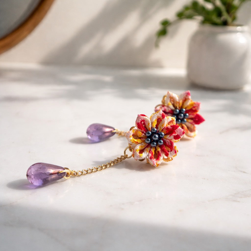 In seasons where there are many special events such as Christmas, New Year's Eve, and New Year's, Japanese people will want to wear a kimono in Japan, but if you can't wear it casually, let's dress up with accessories! The traditional craft "Tsumami-zaiku" using floral kimono fabric will make your anniversary even more special!
