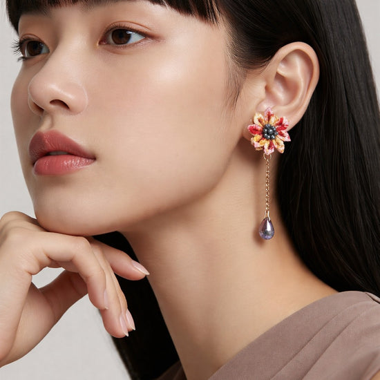 Kimono pattern red flower Earrings